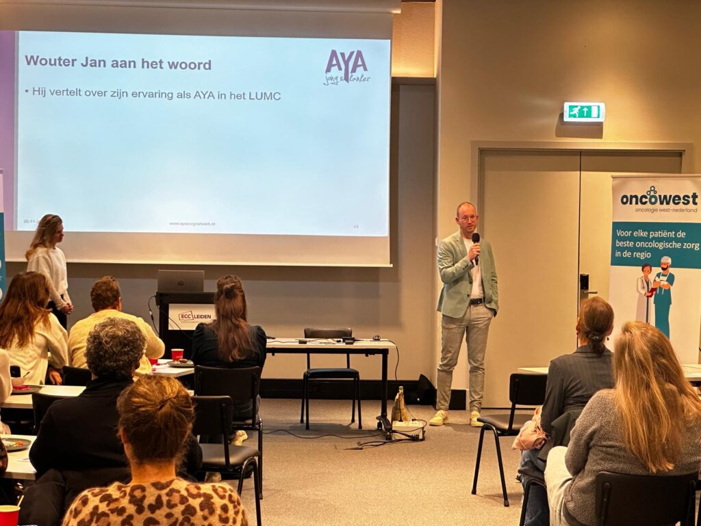 Lisette Bauman, maatschappelijk werker in het LUMC vertelde samen met een patiënt die zelf AYA (Adolescent & Young Adults) is meer over de rol van AYA-zorg en de impact van kanker op het leven van jongvolwassenen met kanker. Ondanks dat er in het ErasmusMC en in het LUMC een AYA-kenniscentrum zit, blijkt in de praktijk dat deze groep patiënten nog niet allemaal de leeftijdsspecifieke zorg krijgen die zij nodig hebben. En dat terwijl de impact op het leven van jongvolwassenen, als het gaat om studeren, werken, vruchtbaarheid, relaties en toekomstplannen, erg groot is. De aanwezige AYA gaf als  waardevolle tip voor de casemanagers: “Blijf vooral luisteren naar de patiënt, hoe zit die tegenover je?” Hij benadrukte hoe belangrijk het is om gedurende de behandeling in gesprek te blijven over de impact van de ziekte op hun leven.